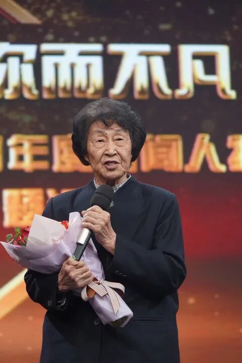 在“2018上海教育年度新闻人物颁奖主题活动”上,于漪获评“年度特别致敬人物”并登台领奖。新华社发(朱水苗 摄)
